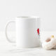 Ein Hahn, der Essen serviert und ein Tablett trägt. Dieses Design sieht auf dieser Tasse wirklich effektiv aus
