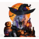 Eine Hexe mit Bier, die zauberhaft gemacht ist. Grapgisches Design mit Typografie. Schwarz und Orange als Halbwinterdesign.