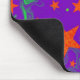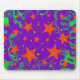 Mousepad mit lila und grünem Hintergrund, verstreut mit zauberhaften, leuchtenden orangen und grünen Sternen. Erstellt mit digitalen Techniken von Jess Perry.
