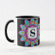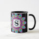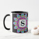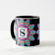 Individuelle erste Kaffee Tasse Mandala Muster. Zwei Töne Combo Tasse in schwarz und psychedelisch. Boho chic mandala Muster. Es ist so einfach, die Initialen zu ändern. Entspannen Sie sich mit einem Cappuccino, entspannen Sie am Ristretto. Eine komplette Palette von Stilen und Farben mit austauschbaren Mustern und Initialen.
