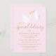 Mit einem niedlichen Storch, der eine ganz besondere Lieferung auf einem weichen rosa Hintergrund trägt, ist diese Babydusche, Sprinkle oder die Dusche für Paare perfekt für alle Kleinen, die unterwegs sind. Fügen Sie Ihre Feierlichkeiten Details in Gold Text, um die perfekte Einladung zu schaffen. Entwickelt von Thisisnotme©