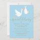 Mit einem niedlichen Storch, der eine ganz besondere Lieferung auf einem weichen, blauen Hintergrund trägt, ist diese Baby-Dusche, Sprinkle oder Paare-Einladung perfekt für alle Kleinen, die unterwegs sind. Fügen Sie Ihre Feierlichkeiten Details in Gold Text, um die perfekte Einladung zu schaffen. Entwickelt von Thisisnotme©