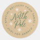 Fügen Sie Ihrem Urlaub und Weihnachten ein wenig mehr Freude mit personalisierten Geschenken vom Weihnachtsmann hinzu! Diese Sonderaufkleber sind mit "Special Delivery from Santa Just for (Kindername)" in kreisförmigem Text rund um den Nordpol und weißen Schneeflocken in der Mitte und einem kraftbraunen Hintergrund versehen.