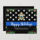 Schick fröhliche Weihnachtsgrüße an Freunde, Geschäftsleute , andere Strafverfolgungsbehörden und deine Gemeinde mit dieser einzigartigen Thin Blue Line Police Department Weihnachtskarte - American Flag in polizeilichen Flaggenfarben, modern schwarz und blau mit heiligen Blätter und Beeren. Personalisieren Sie mit dem Logo, der Nachricht und der Abteilung der Polizeiabteilung. Diese preiswerten Weihnachtspostkarten müssen als übergroße Postkarten verschickt werden, daher können die Postkarten mit normalen Versandkosten belastet sein, benötigen aber weder einen Umschlag noch eine Rücksendekarte. COPYRIGHT © 2020 Judy Burrows, Black Dog Art - Alle Rechte vorbehalten. Spezielle Logos für Feiertage