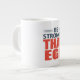 Dieses Design der Tasse enthält ein motivierend Zitat "SEIN STÄRKER ALS EGO", das in einem fett und wirkungsvoll gestalteten Layout dargestellt wird. Der Text ist in drei Zeilen unterteilt, wobei "BE STRONGER" in einem dunkelblauen, kühnen Sans-Serif-Schriftart geschrieben wird, der ein Gefühl von Ernsthaftigkeit und Fokus vermittelt. Unten wird "THAN EGO" in einem leuchtend roten, bedrückten Schriftart hervorgehoben, der Textur und visuelles Interesse hinzufügt. Die kontrastierenden Farben und Typografiestilen heben die Botschaft hervor und fördern die Widerstandskraft und die Selbstverbesserung. Das Design ist sauber und dennoch robust, macht es perfekt für eine Tasse und inspiriere bei jedem Gebrauch Positivität.