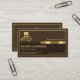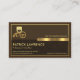 Ein spezieller Rahmen aus Goldrahmen kapselt eine obere braune Schicht und ihr untere braune Grundierstück. Oben befindet sich ein goldenes Chauffeur-Logo, das Sie mit dem Firmennamen auf einem goldenen Tab am anderen Ende verwenden können. Unter dem Tab Gold, in der braunen Marmorhalle, liegt Ihr Prestigename, der Jobtitel und die Kontaktdaten mit einem Slogan zur Bekanntmachung Ihrer Dienstleistungen.