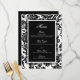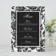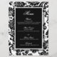 Spezielles Hochzeitsmenü mit schwarz-weißem Damast Menükarte