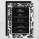 Das elegante, schwarz-weiße Damast-Menü ist perfekt für Hochzeiten, Jubiläum, Brautparty, Verlobung etc. Feiern Sie stilvoll und luxuriös mit dieser ganzen, eleganten Kollektion und fügen Sie eine atemberaubende Touch zu Ihrer Zuhause hinzu. Teile dieser Kollektion können an Ihre Veranstaltung angepasst werden. Viel Spaß, Beifall!