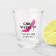 Maßgeschneidertes Stiletto Schuhglas für Mädchen Wochenende Party. Helles Design mit rosa High Heel Schuh und personalisiertem Text. Spaß für Damen Nacht, Brautparty, Mädchen Nacht out, Junggeselinnen-Abschied, Polterabend, Geburtstag und mehr.