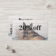 Auf der Vorderseite: Fügen Sie Ihren Rabatt hinzu. Zurück: Personalisieren Sie Ihren Firmennamen, Ihre Telefonnummer, Ihre E-Mail, Ihre Website-Adresse, Ihren qr-Code auf Ihrer Website oder Ihrem Social-Media-Konto. Fügen Sie Ihr eigenes Foto hinzu. Auf beiden Seiten befindet sich ein weißes Overlay über dem Foto, sodass Sie den Text besser lesen können. Sie können diese löschen, wenn Sie ein neutrales Foto haben.