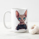 Sphynx-Katze hält Spielecontroller Kaffeetasse