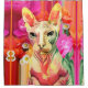 Katzenzucht Sphynx in den Rosen. Hell, Sommerillustration.