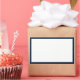 Speckjar mit einem fett dicken dunkelmarinebräunlichen, rechteckigen, weißen Siegel Aufkleber elegant schlicht minimalistisch Stil