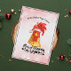 Geben Sie Ihren besseren Freunden diese unglaublich witzig frohe Weihnachtsfeiertagskarte eines würzigen Hühnchens mit einem roten Hut des Weihnachtsmanns. Sie können den Text oben anpassen, der lautet: "Zu den cockiest Peeps ich kenne..." und unter dem Huhn ist "Frohe Weihnachten" Typografie.