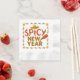 Celebrate the New Year with this fun festive holiday napkins. Delight friends and co-workers with this whimsical design of flame emojis with red and green chili peppers that spell out "Spicy New Year", a sombrero on top and hot sauce pouring out over the year. Your friends will get a kick out of these cute napkins while they join you for some fun ringing in the New Year. Matching cups, keychains, stickers, magnets and coasters available as well.