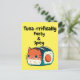Auf dieser Postkarte befindet sich ein zauberhaftes Sushi-Katzendesign mit dem sonnigen Text "Thunfisch und scharf!". Es ist der perfekte Weg, um Ihren Botschaften etwas Spaß und Kultur hinzuzufügen, egal ob Sie ein Fan von Katzen, Sushi oder beidem sind. Diese Postkarte wird jeden beeindrucken, der sie bekommt.