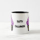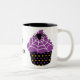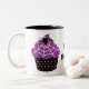 Gotisches Design eines lila Kuchens mit Spinnennetzen und Spinnen. Stilvolles, gotisches halloween Design mit einem schwarz-orangen Thema.