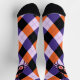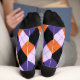 Vorsicht ist die Itsy Bitsy Spider, die diese halben, thematischen Socken mit lila und orangefarbenen Streifen im Hintergrund aufklettert.