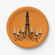 Gotisches Design eines schwarzen Kronleuchters mit Spinnennetzen und Spinnen. Stilvolles, gotisches halloween Design mit einem schwarz-orangen Thema.