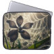 Eine geheimnisvolle und schöne schwarze Orchidee vor dem Hintergrund eines Spinnennetzes bringt Magie in den Tag.