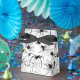 Creepy seamless Halloween pattern featuring black spiders, spider webs, and ink splatters on a white background — perfect for spooky-themed occasion.