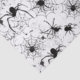 Creepy seamless Halloween pattern featuring black spiders, spider webs, and ink splatters on a white background — perfect for spooky-themed occasion.