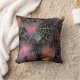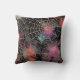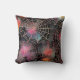 Schönes mehrfarbiges Wasserfarbenspiderweb Design werfen Kissen. Doppelter Druck. Schwarzer Hintergrund mit Pop in Rosa, Rot, Orange, Grün und Blau
