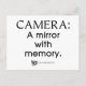 Dieses einfache Textdesign mit der Phrase "Kamera = Spiegel mit Speicher" ist perfekt für Fotografen, die nach etwas einzigartigem für ihren Schrank suchen.