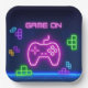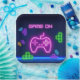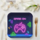 Spiel auf neonrosa, grüne, blaue, lila Video-Gamer-Papiertüte.