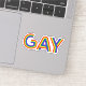 Dieses Kunstwerk zeigt das Wort Gay in einem bunten Regenbogen-Schriftart.