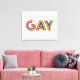 Dieses Kunstwerk zeigt das Wort Gay in einem bunten Regenbogen-Schriftart.
