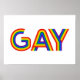 Dieses Kunstwerk zeigt das Wort Gay in einem bunten Regenbogen-Schriftart.