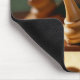 Schach Mousepad, das hölzernen König, Königin, Ritter und Teich auf einem hölzernen Schachbrett zeigt. Es hat die Aufschrift "Spiel!" auf ihm.