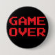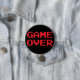 Spiel über Knopf. Ein Knopf, der die Phrase "Spiel über" im klassischen Schriftart des Videospiels 8bit kennzeichnet. Ein großes Geschenk für Gamers, Aussenseiter und Fans der klassischen Videospiele.
