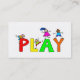 Niedliche Cartoonillustration der kleinen Jungen und der Mädchen, die über riesigen Buchstaben des Alphabetes klettern, die das Wort SPIEL formulieren. Bild verfügbar auf verschiedenen Geschenken und Produkten. Personalisierte Geschäftskarten.