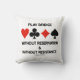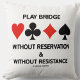 Wenn Sie Bridge spielen - das Bridge- oder Duplikatspiel -, dann genießen Sie dieses Sprichwort-Brückenwerfer mit folgendem Brückenschlag: "Play Bridge - Without Reservation & Without Resistance". Kommt mit den vier Karten-Anzügen. Machen Sie eine Doppelannahme auf, wie man das Bridge-Spiel mit einer Dose von Brücken-in-Wange-Spaß mit diesem Kissen zu spielen!