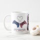 Spaß Niedlichen Paare Gaming Foto Tasse! Design verfügt über zwei Konsolen-Controller, die mit einem Herzdraht verbunden sind, und den Text "Paare, die zusammenspielen, zusammen Bleibe!", ihre Namen und ein Foto Ihrer Wahl.