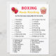 ⭐️ Was es ist: Boxing Movie Matching Game ist ein Party-Spiel. Ordnen Sie den Hauptcharakter dem Film zu? Das Richtigste gewinnt! Die Antwort des Boxmovie Matching Game: 1. G, 2. 3. B, 4. R, 5. M, 6. L, 7. F, 8. P, 9. O, 10. C, 11. J, 12. Frage 13. H, 14. K, 15. A, 16. E, 17. D, 18. N.