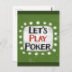 "Let's Play Poker" ist ein niedliches Textdesign mit einer weißen Akzent-Form umgeben von weißen texturierten whimsical Punkten.