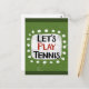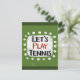 "Let's Play Tennis" ist ein niedliches Textdesign mit einer weißen Akzent-Form, umgeben von weißen, texturierten, whimsikalen Punkten.