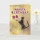 Spielende Katze und 98. Happy Birthday Ballons Karte