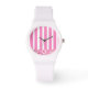 Ein spielerisches Design mit leuchtend rosa und weißen Streifen mit einem lustigen gemusterten Rand am Boden.