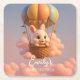Fügen Sie Ihrer Babydusche eine spielerische Touch mit diesem charmanten Design hinzu, das von einem zauberhaften, sonnigen Hasen umgeben ist, der in einem bunten Heißluftballon zwischen weichen rosa Wolken aufsteigt. Dieses skurrile Kunstwerk schafft eine festliche und koordinierte Atmosphäre und bringt Süße, Personalisierung und Freude in jedes Party. Mit individuellem Text macht es Ihren besonderen Tag für Gäste und Familie noch unvergesslicher.