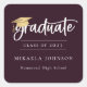 Spielvolles weißes Drehbuch mit goldenem Graduiertenkappenakzent, Aufkleber. Funktionen, dunkler lila Hintergrund. Textzeilen für Abschluss Jahr, Name und Schule des Absolventen.