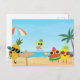 Spielender Sommerstrand Cartoon Obst lustig Postkarte