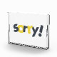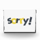 Modernes, spielerisches, lebendiges Grafikdesign des Wortes "Sorry" in den Farben Gelb und Grau. Städtische, einfache Typografie.