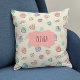 Dieses bezaubernde, personalisierte Kissen mit duftenden Kissen, einfachen Herzensstücken und gewellten Linien, die mit sanften pastellfarbenen Aquarellfarben in Rosa, Pfefferminzgrün, Lavendel und Blassgelb bemalt sind.