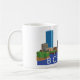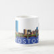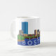 Diese coolen und einzigartigen Ausrüstungsbeschreibungen eine playful und bunte Illustration des Skyline Bostons hinterer Bucht, mit dem Charles River im Vordergrund. Der Turm Johns Hancock und das vernünftige Gebäude erscheinen an jedem Ende des Bildes. Der Text "BOSTON" in einem einfachen weißen Schriftart wird über dem Fluss an der Unterseite der Illustration gelegt.