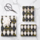 Dieses schwarz-weiße Harlequin-Packpapier hat einen spielerischen Floating-Text, der an jeden Anlass angepasst werden kann, einschließlich Geburtstage, Halloween und Kinderveranstaltungen.