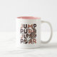 Spielerisches Cat Jump Design - Jump Purr Pun Artw Zweifarbige Tasse